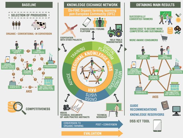 Projekto metu bus sukurta visos Europos ekologinės žemdirbystės mokymosi bendruomenė (angl. Organic Farming Community, OFC), parengta išsami ekologinės žemdirbystės žinių ir praktikos sistema, įdiegta daugiašalė mokymosi platforma, kuri bus testuojama penkiuose Europos atvejų tyrimo srityse. Mokymosi sistema bus orientuota į praktinius ūkininkavimo aspektus – dirvožemio derlingumo palaikymą, kenkėjų ir ligų valdymą be cheminių priemonių, mišrių ir daugiamečių pasėlių pritaikymą, tvarią gyvulininkystę bei ūkio ekonominio atsparumo stiprinimą. Ūkininkai bus mokomi ne tik teorinių žinių, bet ir praktinių įgūdžių, dalyvaus lauko bandymuose bei diskusijose su ekspertais. Projekto metu bus renkami, platinami ir skleidžiami lengvai prieinami, praktiniai ekologinės žemdirbystės žinių ištekliai, daugiausia dėmesio skiriant javams, aliejiniams augalams, baltyminiams augalams ir gyvuliams.